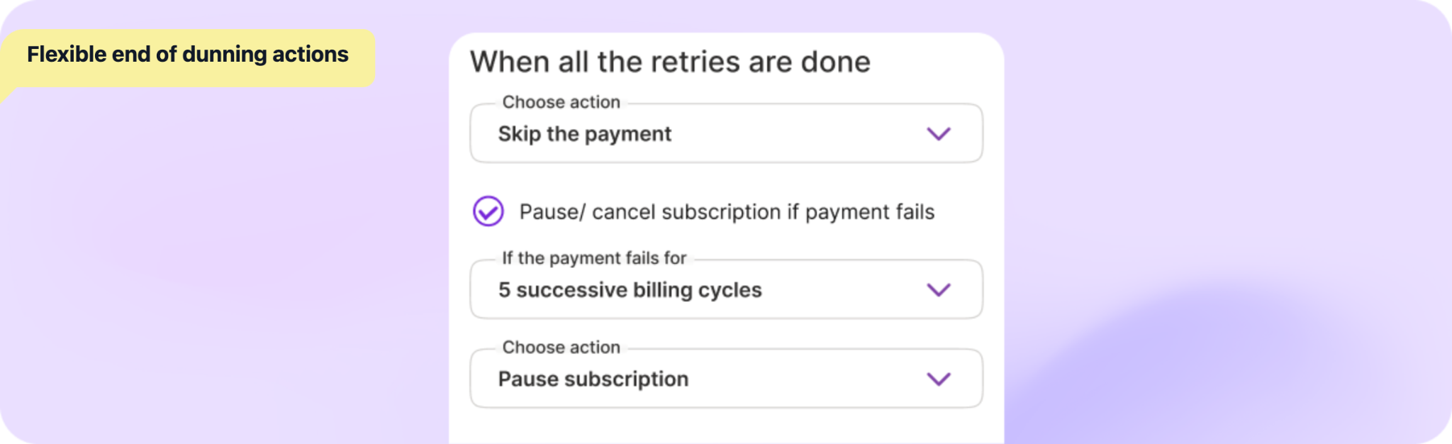 Spread retries across different days and times. With up to 15 attempts, you can catch windows when holds have cleared—especially valuable for high-ticket subscriptions where the charge amount itself may trigger velocity limits.