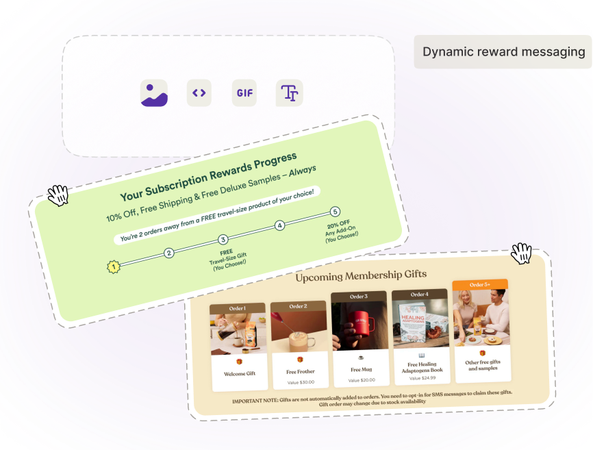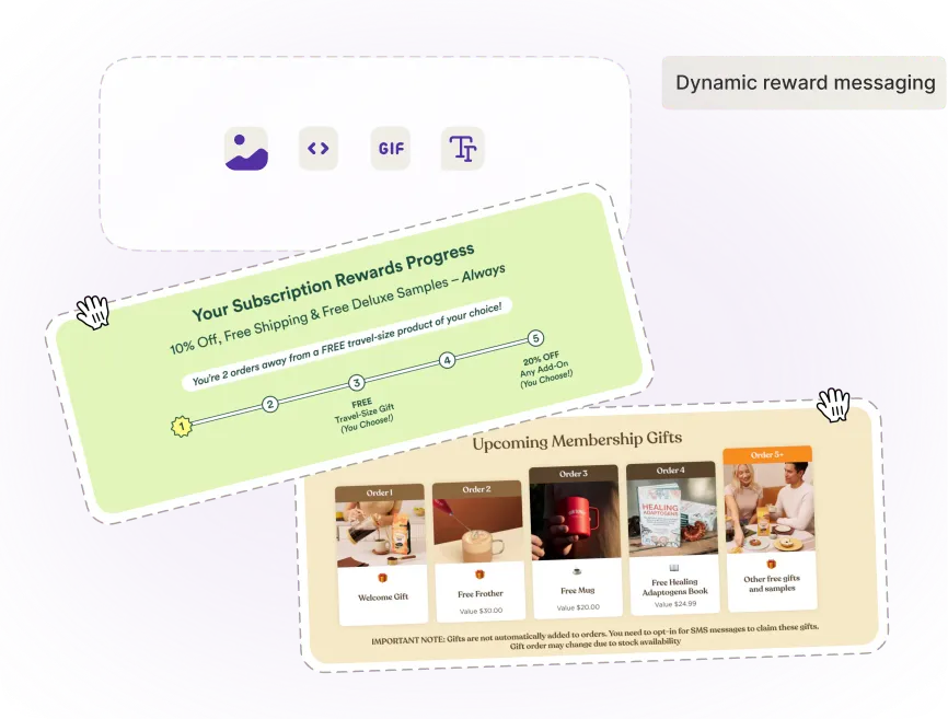 Imagine your customer logging in to see: ‘2 orders away from your FREE gift!’ With Skio? All robotic.