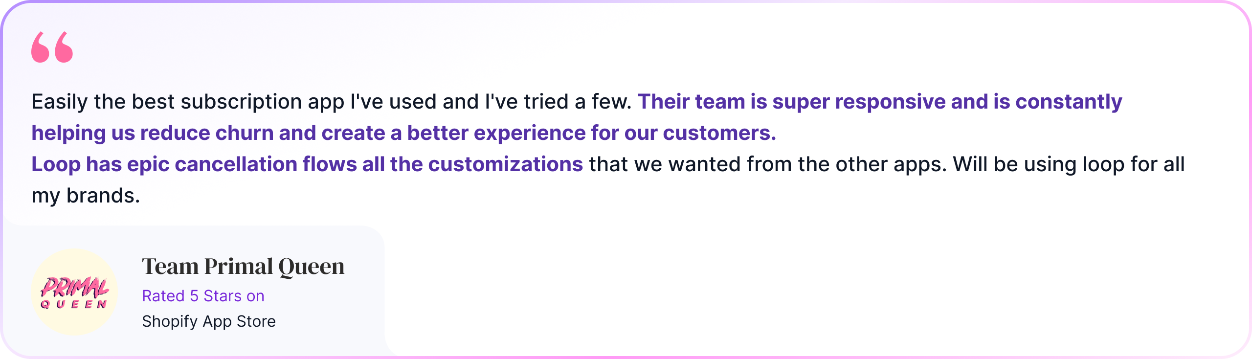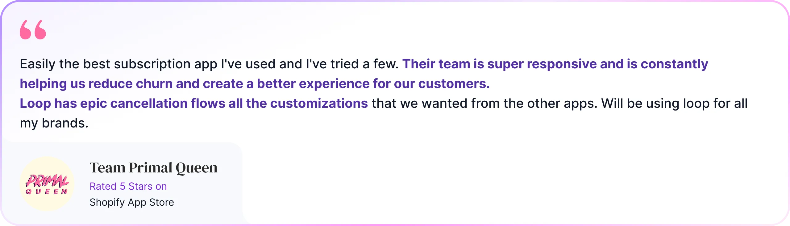 After migrating from Skio to Loop, Primal Queen scaled 50X with our personalized retention features and world-class support.