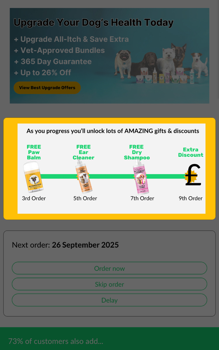 "Upgrade Your Dog's Health Today" positions the purchase as a health investment, with health-focused messaging boosting retention by 29%.