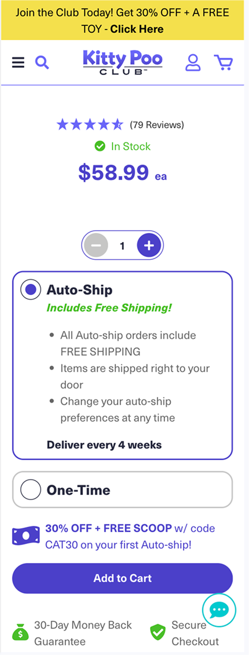 Auto-Ship option has a thick purple border, making it feel like the primary choice compared to the thin gray One-Time option.